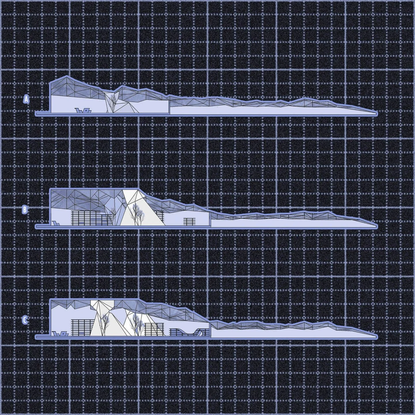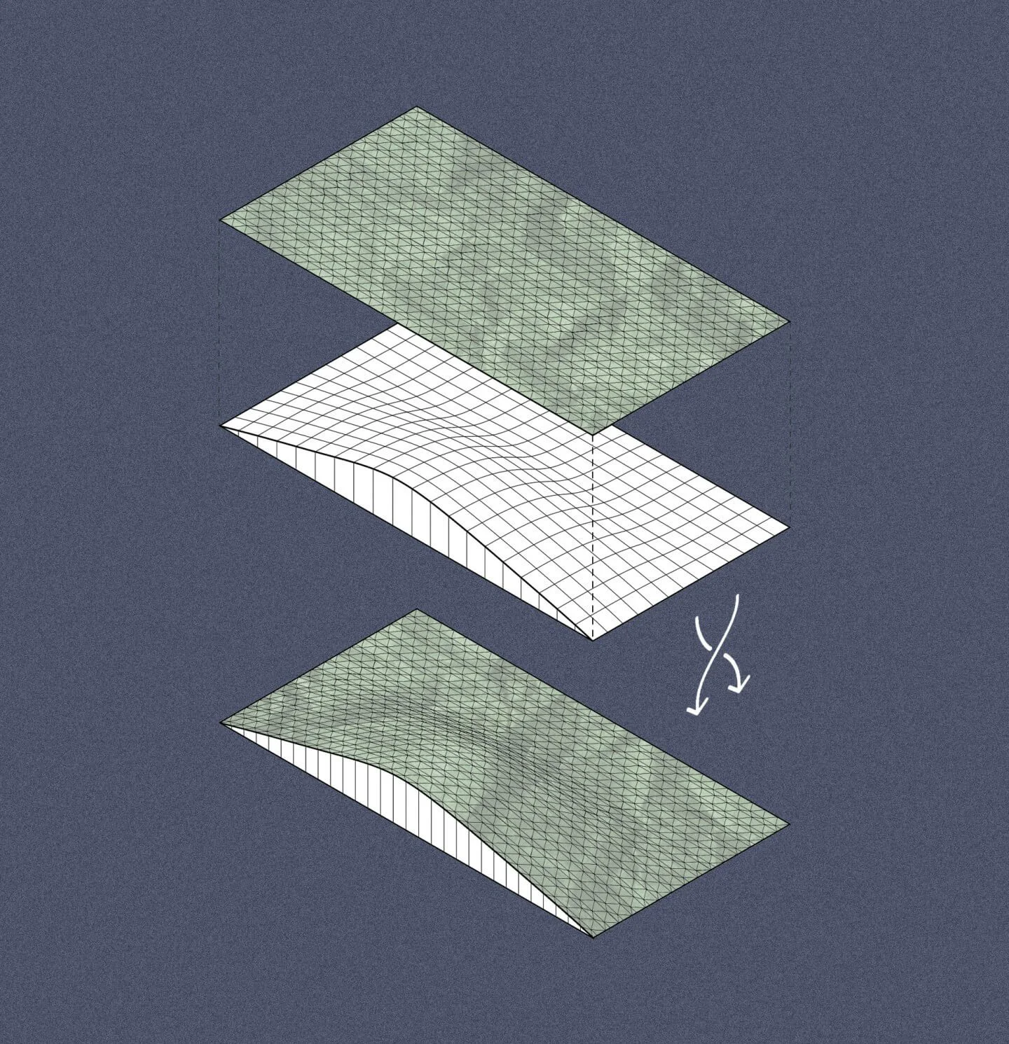 Haskoy is one of the few areas in Istanbul that provides a public park along the seafront. The Hidden Library integrates itself into a neighbouring landscape without detracting from its natural beauty. It ‘hides’ under a tessellated roofscape to preserve the public space above and create a new one below. The outside environment is drawn into the building with three polysurfaced courtyards to create a sense of transparency between the interior and exterior. The three dimensional roofscape is translated into two dimensional profiles that generate the interior furniture for the library.